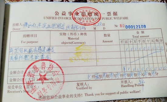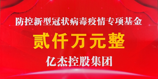 億杰控股集團財務(wù)總監康永斌在接受采訪(fǎng)時(shí)表示,通過(guò)電視、網(wǎng)絡(luò )等媒體看到疫區急需防護服、口罩等醫療用品,我們很著(zhù)急;今天代表集團董事長(cháng)陳高志,特向疫區捐贈人民幣100萬(wàn)元現金,同時(shí)我們也設立了2000萬(wàn)元防控新型冠狀病毒疫情的專(zhuān)項基金;希望這些善款用于疫區防控疫情急需的醫療用品,為疫情防控貢獻一份力量!
