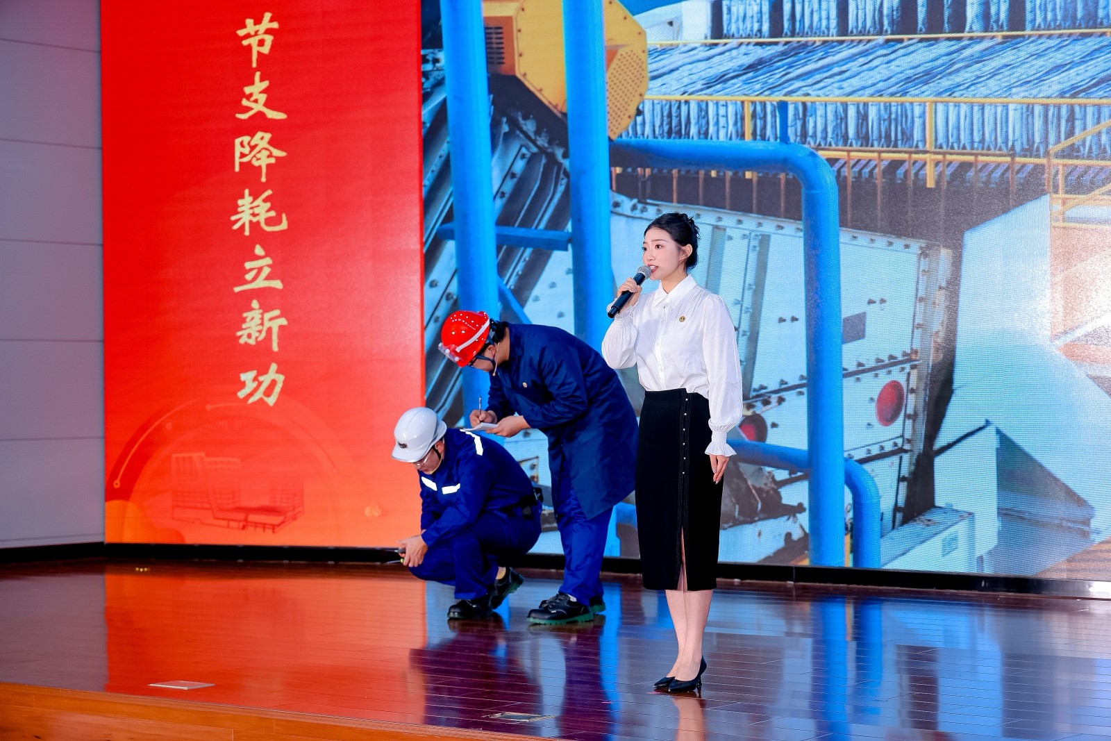 《向“新”謀變 向“智”圖強》以公司降本增效的真實(shí)案例為素材,通過(guò)細膩而充滿(mǎn)力量的語(yǔ)言和生動(dòng)而極富感染的表演,講述了新能人以創(chuàng )新創(chuàng )造去增收增效,以高新技術(shù)來(lái)減碳降耗的奮斗故事,再現了新能人披星戴月、越挫越勇、迎難而上的動(dòng)人瞬間,充滿(mǎn)感情的演繹深深打動(dòng)了在場(chǎng)的評委和觀(guān)眾。真實(shí)展現了新型能源公司“敢闖敢創(chuàng )”的奮斗精神和“二次創(chuàng )業(yè)”奮斗決心。