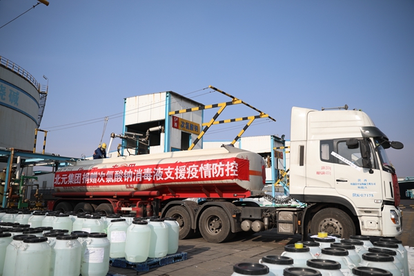 面對社會(huì )上消毒液緊缺,北元化工公司黨委迅速行動(dòng),周密部署,第一時(shí)間安排抽調骨干,組織生產(chǎn)次氯酸鈉消毒液,主動(dòng)向政府和社會(huì )各界聯(lián)系無(wú)償捐贈次氯酸鈉消毒液。