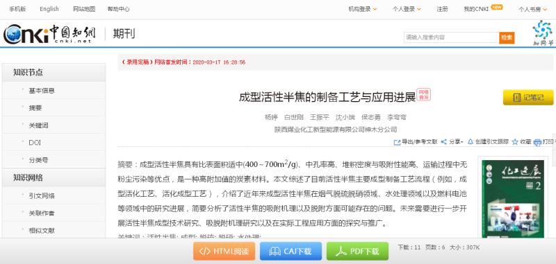 近日,由神木分公司研究團隊撰寫(xiě)的論文《成型活性半焦的制備工藝與應用進(jìn)展》被《化工進(jìn)展》期刊錄用。