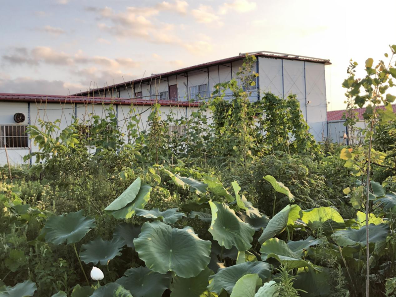 當你來(lái)到淮源熱電聯(lián)產(chǎn)項目部西北側的一片空地時(shí),讓人心頭不由得一動(dòng):映入眼簾的是一片綠色,遠處傳來(lái)公雞的鳴叫,不時(shí)的有一陣呀呀呀的鴨叫聲,突然會(huì )看到幾只野鳥(niǎo)被大白鵝攆著(zhù)向遠處飛去,水面上偶爾躍起一兩條魚(yú)兒,連片的荷葉中伸出三兩只含苞待放的荷花,好一派世外桃源的景象。這就是淮源黨支部利用業(yè)余時(shí)間自費建設的“黨員愛(ài)心農場(chǎng)”。