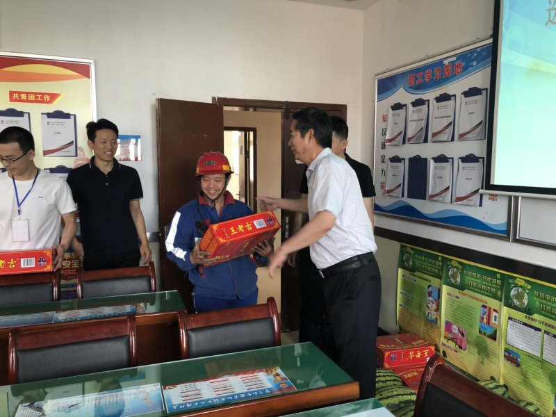 炎炎夏日、酷暑難當,7月10日選煤公司副總經(jīng)理張洪安攜陜北管理中心副主任張文俊、張博一行蒞臨韓家灣選煤廠(chǎng)慰問(wèn)基層員工,為大家帶來(lái)了西瓜、涼茶飲料、水蜜桃等防暑降溫禮品,將清涼一夏送到一線(xiàn)。