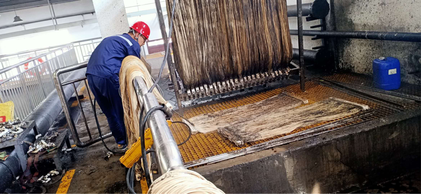 你看,在污水處理站現場(chǎng),檢修人員熟練地將膜組件吊出、拆分,然后用自來(lái)水清洗膜表面附著(zhù)的污泥,之后又吊進(jìn)已配制好清洗液的清洗池內再浸泡兩小時(shí),浸泡完成后,再吊出放回至膜池內,并接好集水管,曝氣管活接,這一工序才算完成。