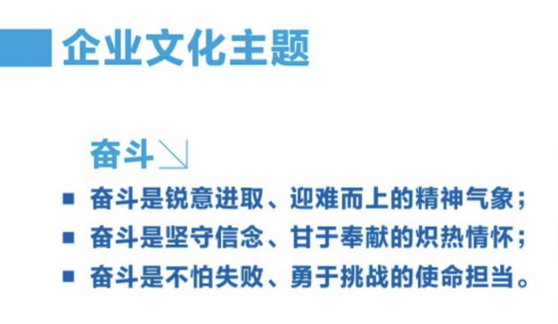 不進(jìn)則退,這對于企業(yè)和個(gè)人而言都是亙古不變的真理。因此奮斗也是企業(yè)和個(gè)人亙古不變的話(huà)題。不舉步,越不過(guò)柵欄,不邁腿,登不上高山。企業(yè)給予員工實(shí)現夢(mèng)想的舞臺,因此員工應積極響應企業(yè)文化主題,要有艱苦耐勞的奮斗精神,堅守信念,迎難而上,銳意進(jìn)取。