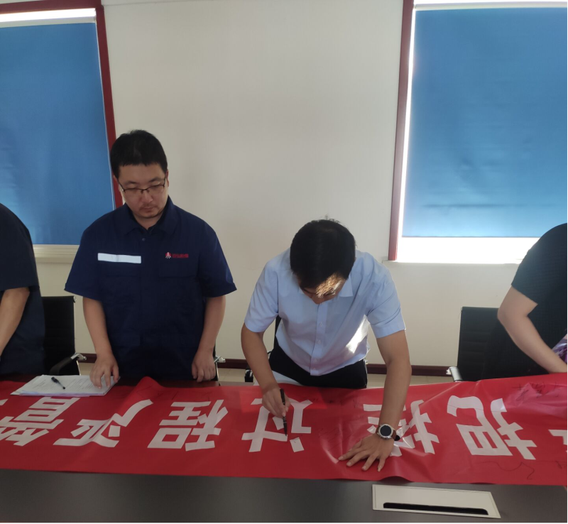 啟動(dòng)儀式上,公司宣貫了《關(guān)于開(kāi)展2020年“百日安全”活動(dòng)的通知》,文件從安全理念宣傳貫徹、隱患排查治理、安全生產(chǎn)專(zhuān)項整治、反“三違”攻堅、雙體系建設、應急管理等十個(gè)方面對今年后100天的安全生產(chǎn)工作做了安排部署,就活動(dòng)期間的安全管理和干部作風(fēng)提出了嚴格要求,明確了相應的措施和獎罰辦法。生產(chǎn)部部長(cháng)呂少大同志代表員工做了表態(tài)發(fā)言,全體與會(huì )人員進(jìn)行安全承諾宣誓,并在主題條幅上進(jìn)行鄭重簽字。