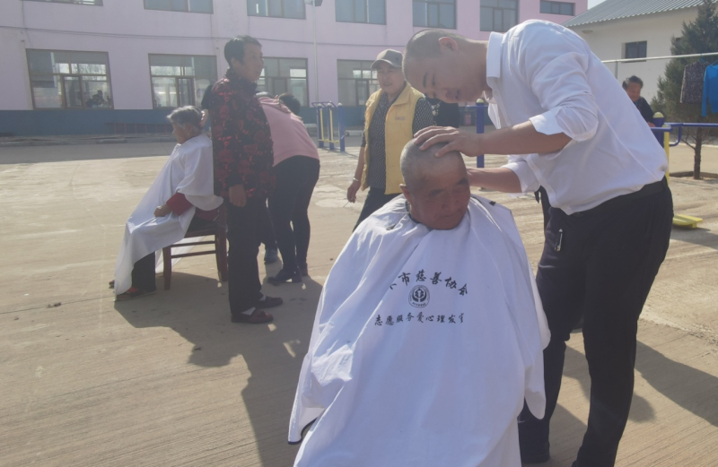 活動(dòng)中,志愿者們還為老人進(jìn)行免費理發(fā),受到老年朋友的熱烈歡迎。每位理發(fā)后的老年人精神面貌煥然一新,臉上洋溢著(zhù)開(kāi)心的笑容。一位大爺說(shuō),“小伙子啊,知道你們免費給剪頭發(fā)我就過(guò)來(lái)了,沒(méi)想到還剪得挺仔細,感謝你們來(lái)關(guān)心我們啊,為你們點(diǎn)贊!”。同時(shí),志愿者們?yōu)槔先思糁讣?、打掃庭院,和老人下象棋,圍起圈子談心拉家常,切?shí)的關(guān)心老年人生活,傾聽(tīng)他們的心聲,讓老年人真真切切感受到關(guān)愛(ài),在歡聲笑語(yǔ)中和老人們一起度過(guò)這個(gè)美好的節日。