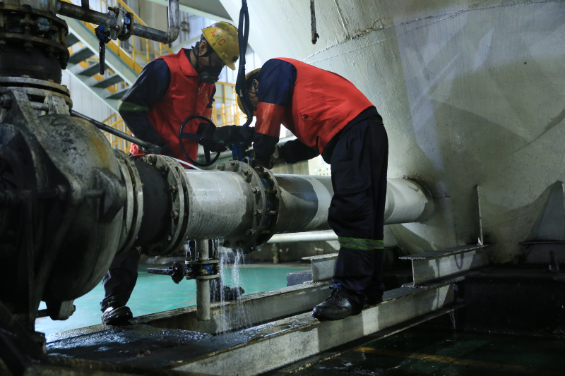 3014合介泵密封墊破損,漏水嚴重、跑介嚴重,緊急需要恢復?;謴蜁r(shí)會(huì )噴料,渾身濕透-----我們上。