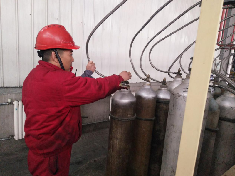 總指揮立即通知應急救援小組,停爐并告訴中控人員關(guān)閉熱風(fēng)閥打開(kāi)冷風(fēng)閥,同時(shí)應急救援小組同志飛快的跑到二氧化碳應急注射區擰開(kāi)二氧化碳瓶子,打開(kāi)磨機和收塵管道閥門(mén),開(kāi)始注射,約莫過(guò)了大半個(gè)小時(shí),中控室操作人員,對講機又喊到,溫度下降到安全溫度,還在下降。此時(shí),大家松了一口氣,外面也在下著(zhù)大雪,隨著(zhù)緊張的氣氛演習也成功結束了.
