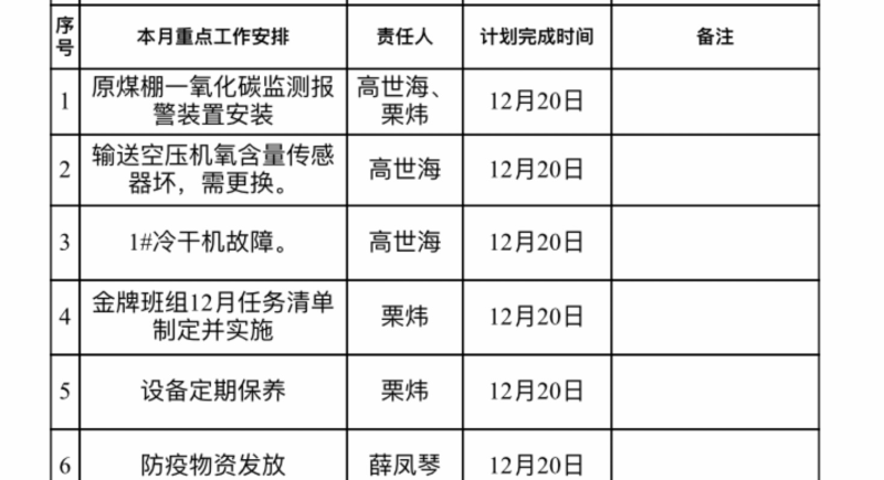 帶著(zhù)問(wèn)題針對性的去排查隱患,既縮短了排查時(shí)間,且排查的隱患有質(zhì)有量。每月中心安全環(huán)保例會(huì ),會(huì )議紀要上列工作清單,落實(shí)工作任務(wù),工作責任人,工作時(shí)間節點(diǎn)。以“清單”為載體,在次月工作例會(huì )上就上月工作安排完成情況進(jìn)行通報,讓工作負責人“紅紅臉”、“出出汗”,從而達到工作落實(shí)到位的目的。