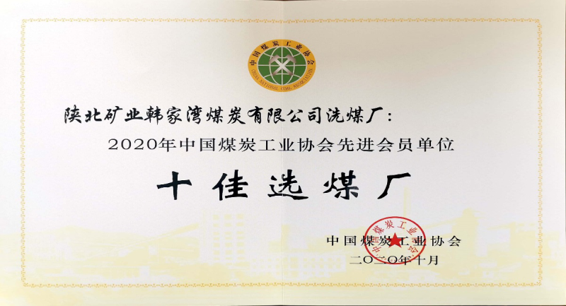近日,中國煤炭工業(yè)協(xié)會(huì )五屆理事會(huì )第四次會(huì )議在北京召開(kāi)。會(huì )議公示了中國煤炭工業(yè)協(xié)會(huì )《關(guān)于表彰2020年先進(jìn)會(huì )員單位和先進(jìn)個(gè)人的決定》,授予陜西煤化選煤技術(shù)有限公司所運營(yíng)的黃陵二號選煤廠(chǎng)和韓家灣選煤廠(chǎng)“十佳選煤廠(chǎng)”的榮譽(yù)稱(chēng)號,至此,選煤公司所運營(yíng)的選煤廠(chǎng)已有3座獲此殊榮。
