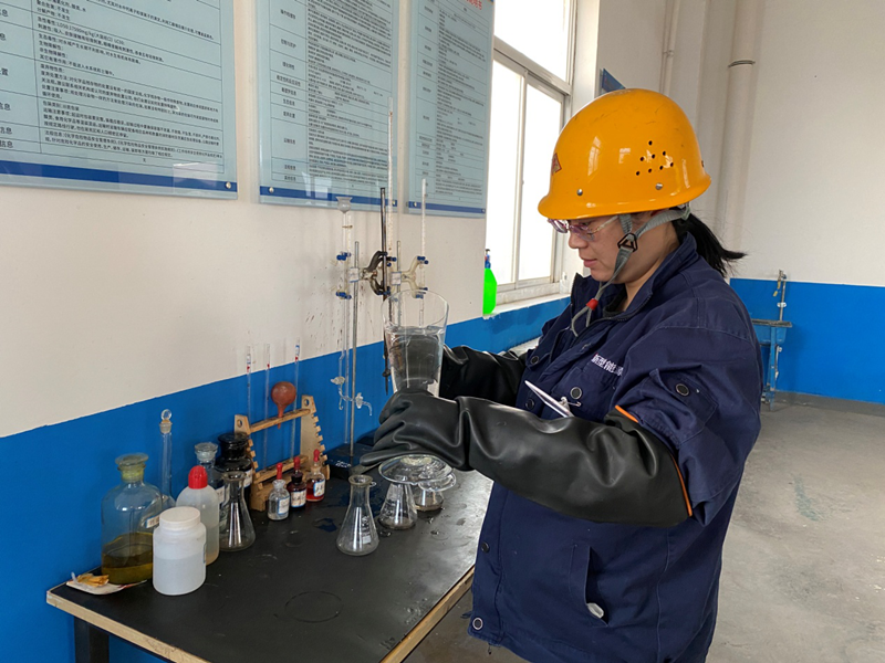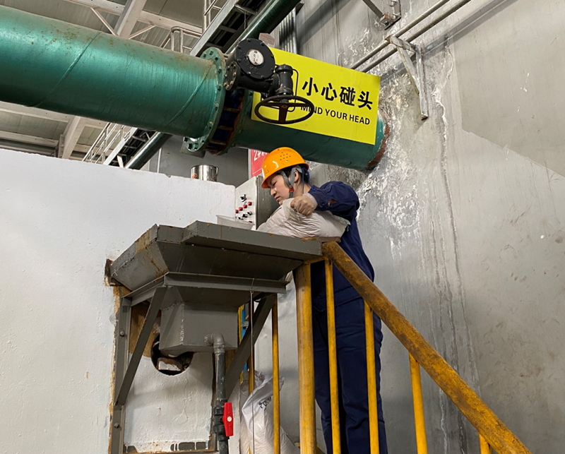當然,這兒的女同事不止一個(gè),再瞧,還有新加入公司大家庭的還有兩位。她們都是很普通的女孩,培訓結束后分到了運營(yíng)中心污水處理站。污水處理站的四個(gè)崗位加藥、壓泥、巡檢、集控,她們都需要輪崗。單說(shuō)PAC藥劑配制對她們而言就是一場(chǎng)“挑戰”,每小時(shí)就需注入25公斤的藥品,對于女孩來(lái)說(shuō)是不易的。