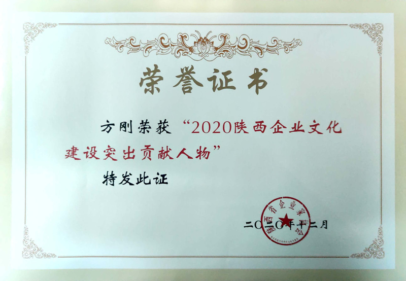 12月24日,由陜西省企業(yè)家協(xié)會(huì )和渭南市政府主辦的“金秋季百企、千項、萬(wàn)人進(jìn)渭南·2020陜西百強企業(yè)發(fā)布暨第五屆文化年系列活動(dòng)”在渭南建國飯店隆重召開(kāi)。會(huì )議發(fā)布并表彰了2020陜西百強企業(yè)、民營(yíng)50強企業(yè)、企業(yè)文化建設突出貢獻人物和優(yōu)秀成果。公司黨委書(shū)記、董事長(cháng),陜西省企業(yè)家協(xié)會(huì )第七屆常務(wù)理事方剛被授予“2020陜西企業(yè)文化建設突出貢獻人物”,公司整體榮獲“2020陜西企業(yè)文化建設優(yōu)秀成果”獎。