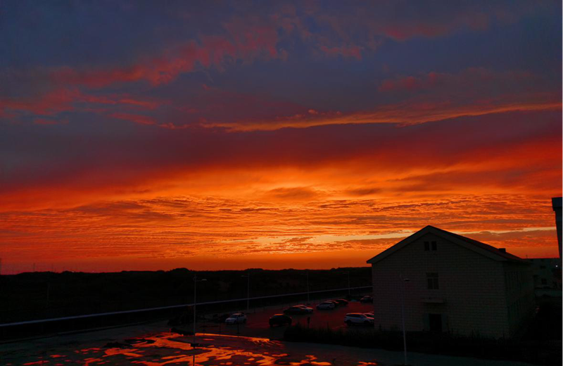 夕陽(yáng)映照下的廠(chǎng)房、沙灘、殘雪,