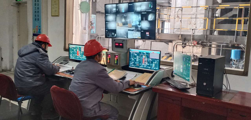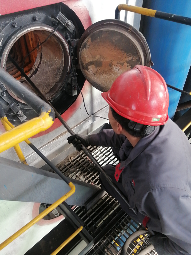 司爐人員正在吹掃爐膛灰塵,以確保設備運轉正常