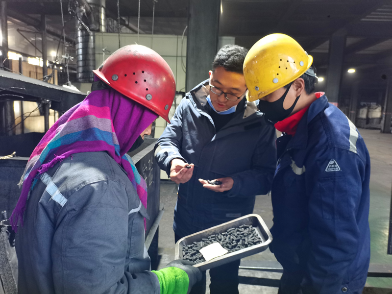 作為公司的重點(diǎn)科研項目之一,科研技術(shù)人員直面問(wèn)題,細致研究產(chǎn)品生產(chǎn)工藝參數、粘合劑配比和組成等關(guān)鍵控制參數,優(yōu)化論證中試試驗方案,赴山西、寧夏等地進(jìn)行實(shí)地考察、調研,深入了解各個(gè)廠(chǎng)家的工藝設備和流程。試驗過(guò)程中,技術(shù)成員堅持“難關(guān)變攻關(guān)”,翻閱大量相關(guān)資料,先后攻克了產(chǎn)品耐壓強度、耐磨強度不達標等技術(shù)難題,最終成功完成了活性焦產(chǎn)品的中試試驗。