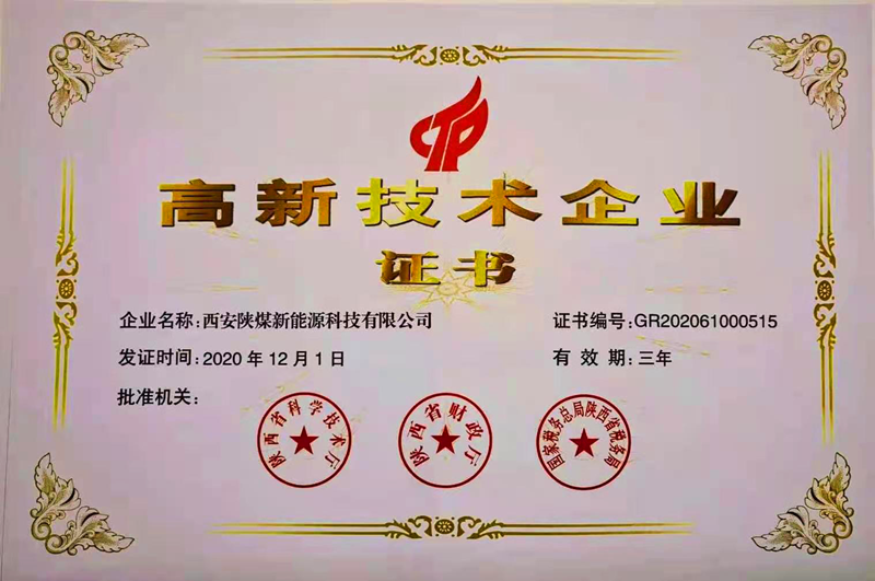 近日,西安陜煤新能源科技有限公司(以下簡(jiǎn)稱(chēng)“西安新能科技公司”)順利通過(guò)了陜西省2020年度高新技術(shù)企業(yè)認定,并獲得由陜西省科學(xué)技術(shù)廳、陜西省財政廳、國家稅務(wù)總局陜西省稅務(wù)局聯(lián)合頒發(fā)“國家高新技術(shù)企業(yè)”認定證書(shū),由此標志著(zhù)該司正式跨入國家高新技術(shù)行列。