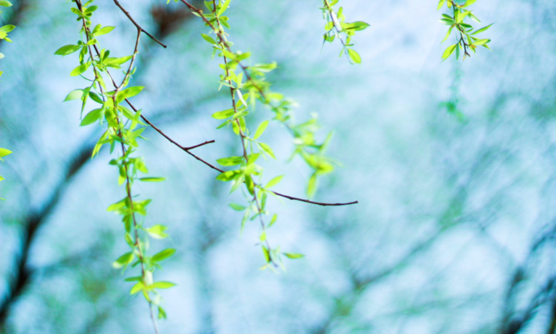 忽然某日,不經(jīng)意間干黃的柳條吐出了新芽,遠遠望去,一團惹人憐愛(ài)的鵝黃,像國畫(huà)中隨水暈染開(kāi)的色彩,一用力怕就要消散。羞怯的小草,露出小小的額頭,像極了兒時(shí)害怕生人的我們,若有似無(wú),真應了那句“草色遙看近卻無(wú)”。
