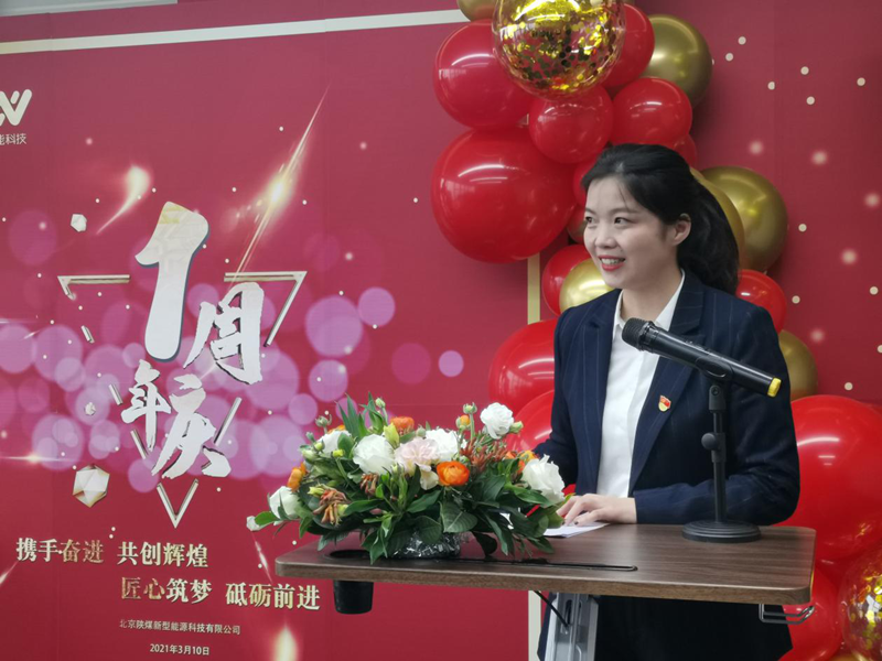 五彩的氣球、艷麗的鮮花裝飾了公司每一個(gè)角落,每個(gè)新能科技人都洋溢著(zhù)喜悅的笑臉。對于每個(gè)北京新能人來(lái)說(shuō),3月10日是一個(gè)特殊且值得銘記的日子。一年前的今天,北京陜煤新型能源科技有限公司在北京正式成立,從此肩負使命和擔當。